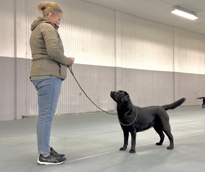 Dag 2: Hon ställer sig sååå fint och du har också koll på dig själv. Nu under träning kanske du skulle ha varit snabbare med att berömma och ge godis så det befästs ordentligt hos hunden vad du önskar att hon ska göra.